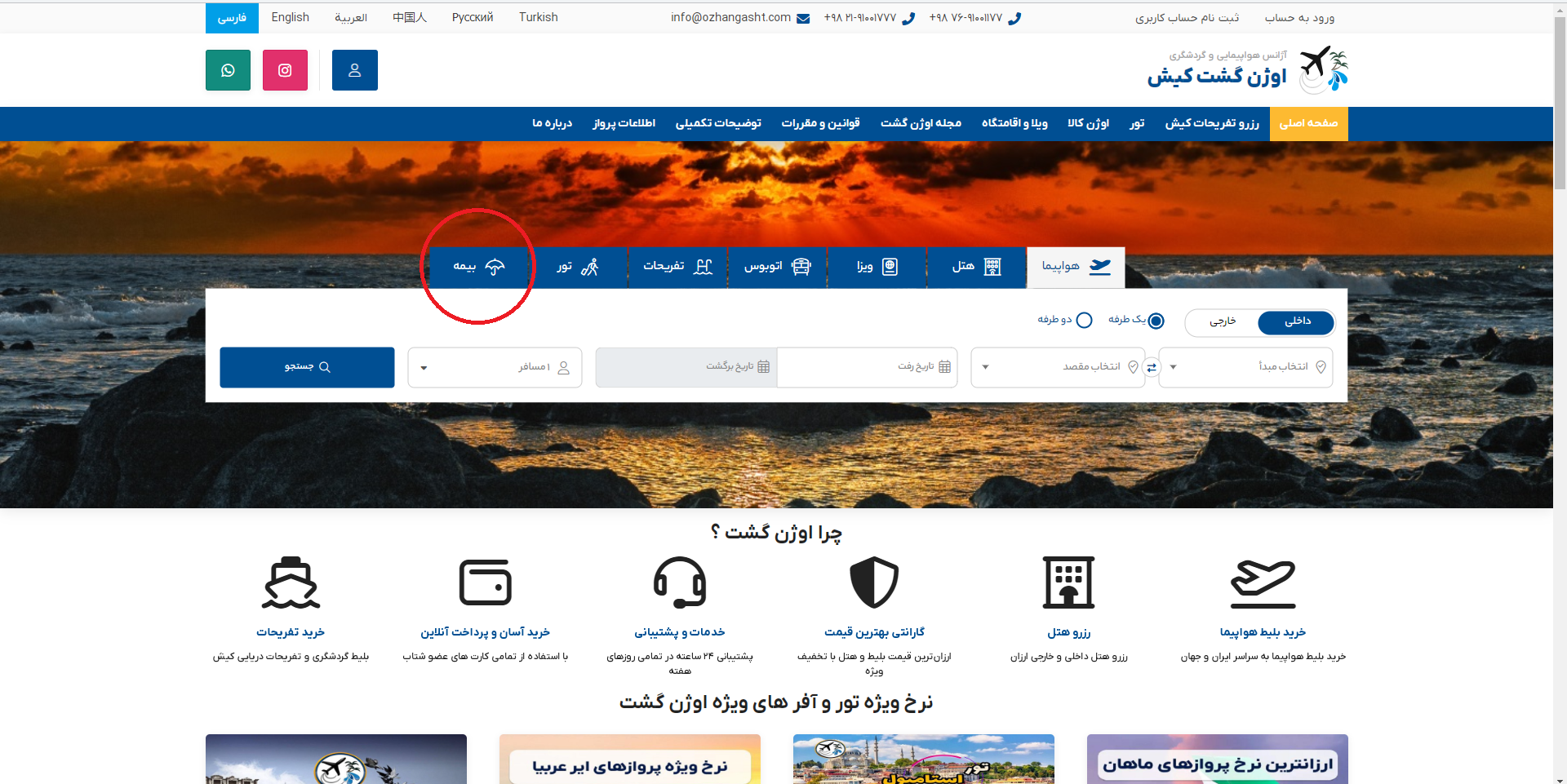 برای خرید آنلاین بیمه مسافرتی از اوژن گشت، اطلاعاتی مانند کشور مقصد، تاریخ رفت و ... را وارد کنید. همیشه پشتیبانی اوژن گشت را در کنار خود دارید و میتوانید هر سوالی در مورد بیمه مسافرتی را از کارشناسان ما بپرسید.