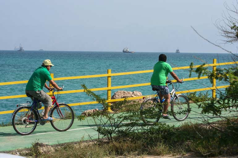 إذا لم تحضر دراجتك معك إلى جزيرة كيش ، فاستأجر دراجة من أحد فروع تأجير الدراجات مثل Persian Golf أو Greek Ship. توجد في هذه المراكز دراجات فردية ومزدوجة ومتعددة الأشخاص ودراجات ثلاثية العجلات. تم بناء مسار ركوب الدراجات في كيش بالتوازي مع الشاطئ ولا يُسمح بدخول السيارات إليه. لهذا السبب ، يركب السائحون الدراجات بأمان كبير ويتمتعون بإطلالة رائعة على البحر.