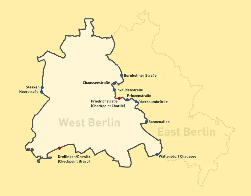 After the Berlin Wall was built, three border crossings were built to control traffic, the most famous of which was Checkpoint Charlie (Checkpoint C); A crossing that only diplomats had the right to cross and over time became a famous symbol of the city's division. The Berlin Wall greatly reduced the tensions between the parties of the Cold War; To the extent that "John F. Kennedy also admitted that "a wall is better than a war".