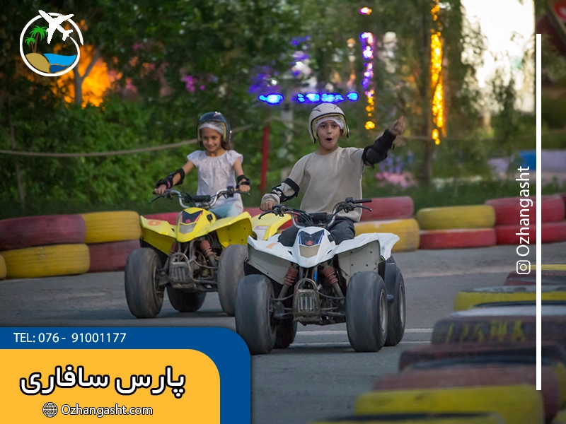 محل مجموعه بلوار امام، انتهای بلوار توسعه، است.* وزن مورد تایید برای آیتم بانجی شوتینگ حداقل ۴۵ و حداکثر ۹۰kg است.*حداقل قد مورد نیاز برای آیتم کارتینگ۱۴۰cm می باشد.*افراد قدبلند و درشت اندام قبل از تهیه بلیط از امکان استفاده از ماشین های کارتینگ اطمینان حاصل نمایند.* برای آیتم ZORBALL باید لباس تهیه شده توسط مجموعه سافاری را بپوشید و کاملا خیس خواهید شد.*حداقل سن برای آیتم موتورهای ATV۹۰،چهار چرخ ۱۷ سال می باشد و داشتن توانایی فیزیکی جهت کنترل موتور الزامی است.*برای موتورهای ATV۲۵۰ دنده ای، باید حتما گواهینامه موتور سواری همراه خود داشته باشید.*شماره پشتیبانی و راهنمایی برای استفاده از پکیچ ها و تخفیفات: ۰۷۶۹۱۰۰۱۱۷۷