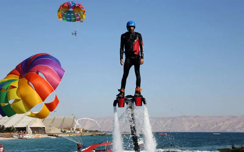 یکی دیگر از شرایطی که افراد متقاضی برای استفاده از فلای بورد کیش باید داشته باشند در این است که حتما باید شنا بلد باشند چون زمانی که در فلای بورد بین پرواز بالا و پایین می شوند و ناگهان در آب سقوط می کنند بایستی حتما شنا بلد بوده تا در این حین که در زیر آب می افتد هیچ مشکلی برای فرد به وجود نیاید. علاوه بر این که یکی از ملزومات این ورزش قبل از هر چیز بلد بودن شنا میباشد, فرد باید جلیقه ی نجات نیز تن کند تا در این راستا از بروز هر گونه مشکل و خطر جانی جلوگیری به عمل بیاید. برای لذت بردن افراد از این تفریح فوق العاده مهیج و جذاب و جدید همواره مسئولین تمامی تدابیر را فراهم نموده اند تا اشخاص متقاضی به صورت ایمن بتوانند این بازی را تجربه نمایند.
