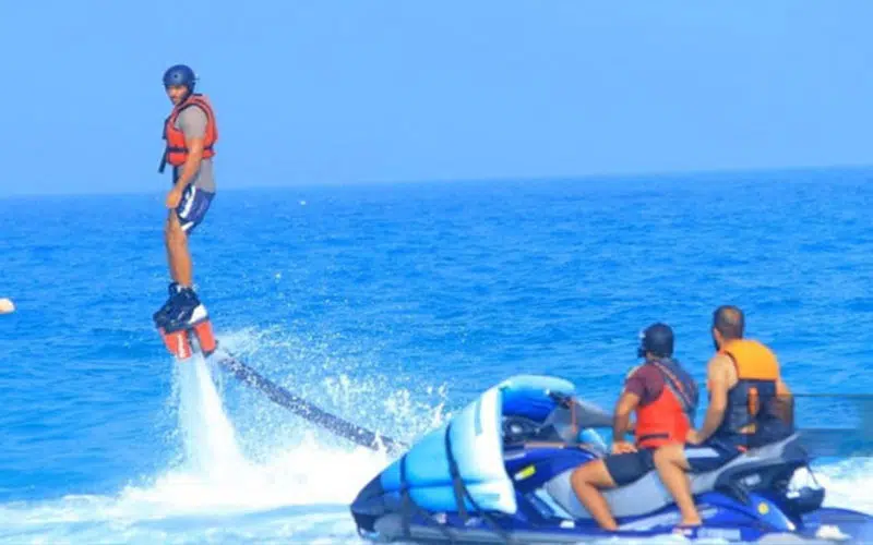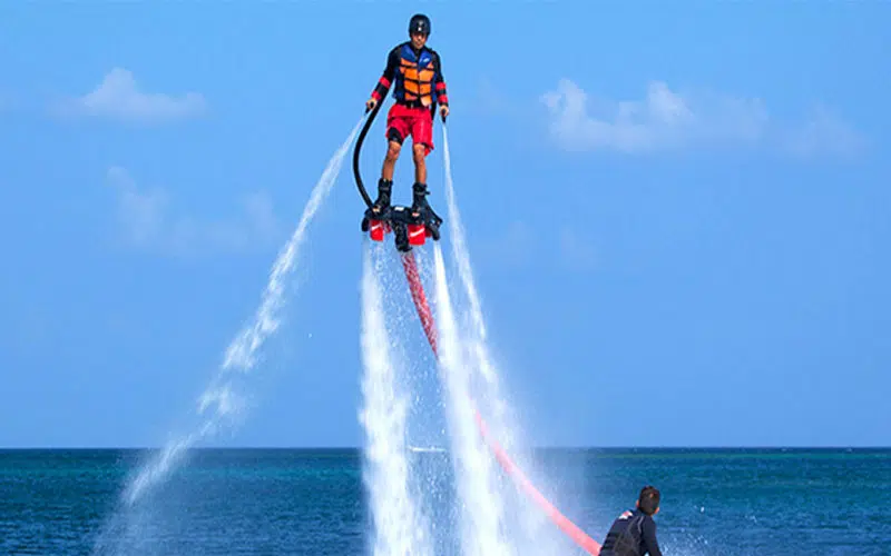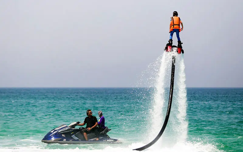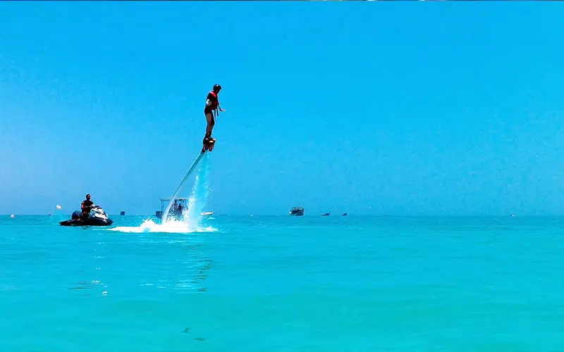 یکی از مهم ترین جنبه های تفریحات دریایی جزیره ی کیش فلای بورد میباشد که گردشگران و مسافرانی که به کیش می آیند علاقه مند به امتحان کردن فلای بورد هستند. به این صورت که مسافران می توانند با کمک فلای بورد بالای سطح آب دریا رفته و به شکل ایستاده پرواز کنند. منظور از فلای بورد همان کفش هایی است که بایستی به پا کنید, این کفش ها به لوله های بزرگی متصل هستند و آن لوله ها به جت اسکی وصل شده است.