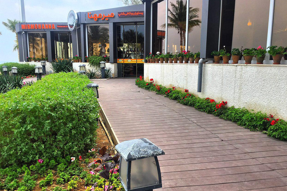 رستوران میرمهنا: میرمهنا یکی از معروفترین رستورانهای جزیره است که در نزدیکی پارک ساحلی مرد ماهیگیر واقع شده است. این رستوران پارکینگ اختصاصی دارد و دارای دو فضای سالن سرپوشیده و فضای باز ساحلی است. در این رستوران میتوانید تا آماده شدن سفارشتان از اینترنت رایگان لذت ببرید. از محبوبترین غذاهای رستوران میرمهنا، ماهی شوریده، قلیه ماهی، قلیه میگو، کباب یونانی و شیشلیک است.