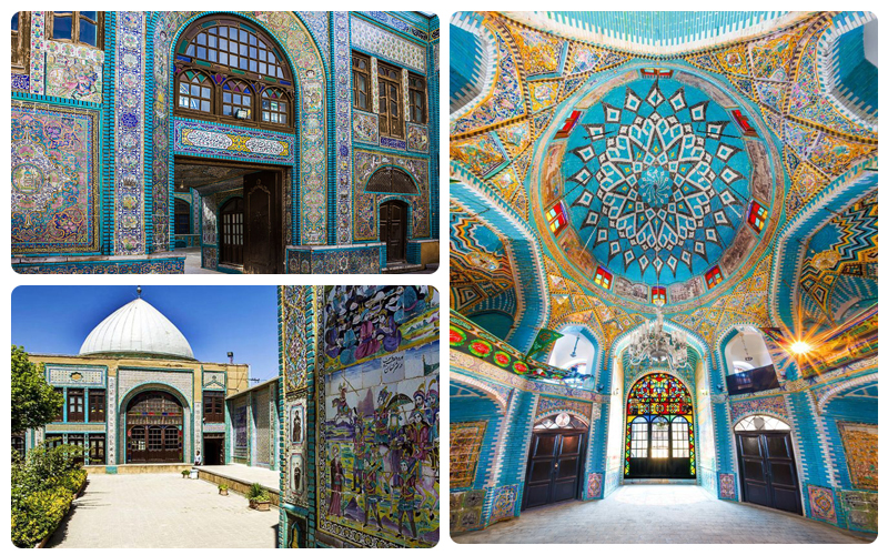 این تابلوهای زیبا صحنه هایی از عروج حضرت محمد (ص) و دیدن حضرت علی (ع)درمعراج.ضمانت حضرت امام رضا (ع) برای آهو.قربانی کردن اسماعیل توسط ایراهیم.نبرد حضرت علی در خیبر.باطل کردن جادوی جادوگران فرعون توسط حضرت موسی و مکتب خانه فرزندان حضرت علی را به تصویر کشده است.