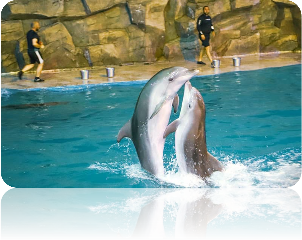 در نمایش‌های این دلفیناریوم که به زبان گرجی و انگلیسی برگزار می‌شوند، هشت دلفین حداکثر ۳۰ فعالیت اعم از رقص‌های مختلف، بازی با حلقه و توپ، تعادل روی دم و... را انجام می‌دهند.