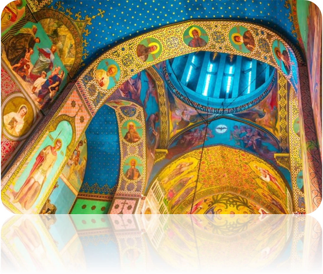 علاوه بر نمای بیرونی چشم‌نواز این کلیسا که چشم بینندگان را به خود خیره می‌کند، نمای داخلی آن نیز توسط نقاش معروف، گریگور گاگارین، در طول چهار سال نقاشی شده و زیبایی آن زبانزد تمام گردشگران است.