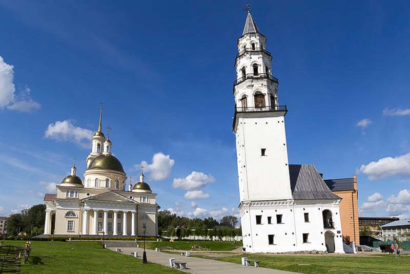ابن برج به دستور پتر کبیر در خلال سال های 1721 تا 1745 با ارتفاعی در حدود 57/5 متر با کاربری نظامی ساخته شد ولی به سبب ناپایداری بستر آن و فرسایش خاک در اثر حرکت آب های زیر زمینی خلی زود دچار انحراف شد به گونه ای که امروزه این میزان به سه درجه رسیده است.البته برای جلوگیری از روند انحراف در حین ساخت آجر های زاویه ای خاصی در آن به کار برده شد تا به این ترتیب یرج را به سمت دیگر متمایل و روند کج شدن آنرا متوقف نمایند.