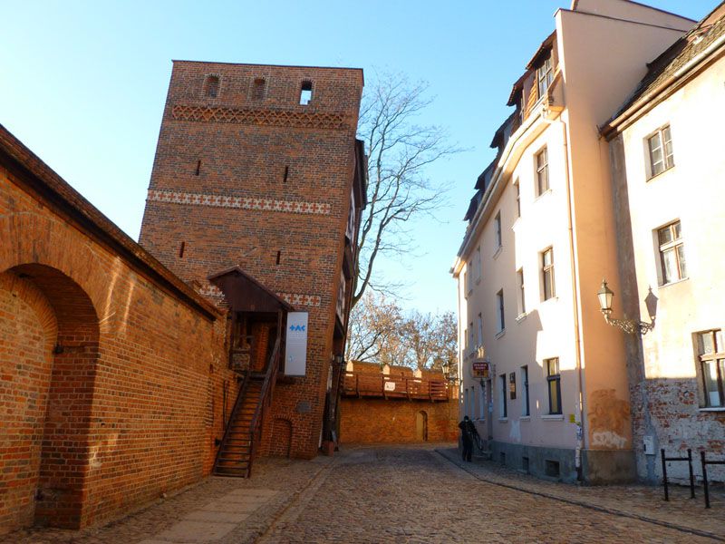 برج ترونی در قرن 13 میلادی به عنوان بخشی از دیوار دفاعی شهر ساخته شد امام از قرن هجدهم کاربرد آن تغییر یافت و از آن زمان تا کنون در انواع کاربری های متفاوت همچون زندان.آهنگری.تفنگ خانه.فروشگاه.و کافی شاپ ادامه حیات داده است.علت کج شدن این برج به مانند دیگر سلف های خود قرار گیری آن بر بستری ناپایدار است که منجر شده بخش بالایی آن 1/5 متر از حالت عمود انحراف پیدا کند.این روند البته امروزه متوقف شده و بیم فرو ریختن این اثر تاریخی ارزشمند از میان رفته است.