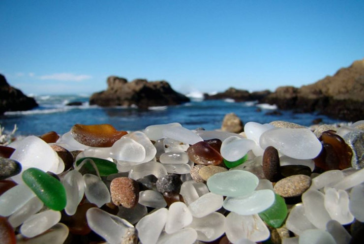 در فورت براگ کالیفرنیا ساحلی به وجود امده که امروزه تبدیل به یک جاذبه خیره کننده شده است. این ساحل که از پسمانده زباله هایی مثل شیشه و پلاستیک به وجود امده، به جای یک ساحل ماسه ای تبدیل به ساحلی شیشه ای شده است. کافی است که کمی از این شیشه ها را برداریم ان وقت است که چهره خود را در شیشه های شفاف خواهیم دید. این قطعه های شیشه ای که با گوش ماهی ها و حلزون ها ترکیب شده اند، تصویر بی نظیر را به وجود اورده اند. شیشه هایی که با زلالی اب این ساحل بسیار هم خوانی دارد. این ساحل که بیشترین غلظت شیشه را در خود دارا است تنها مکانی از دنیا می باشد که بر اثر عملی اشتباه، یعنی ریختن زباله در محیط تبدیل به جاذبه ای دیدنی شده است.