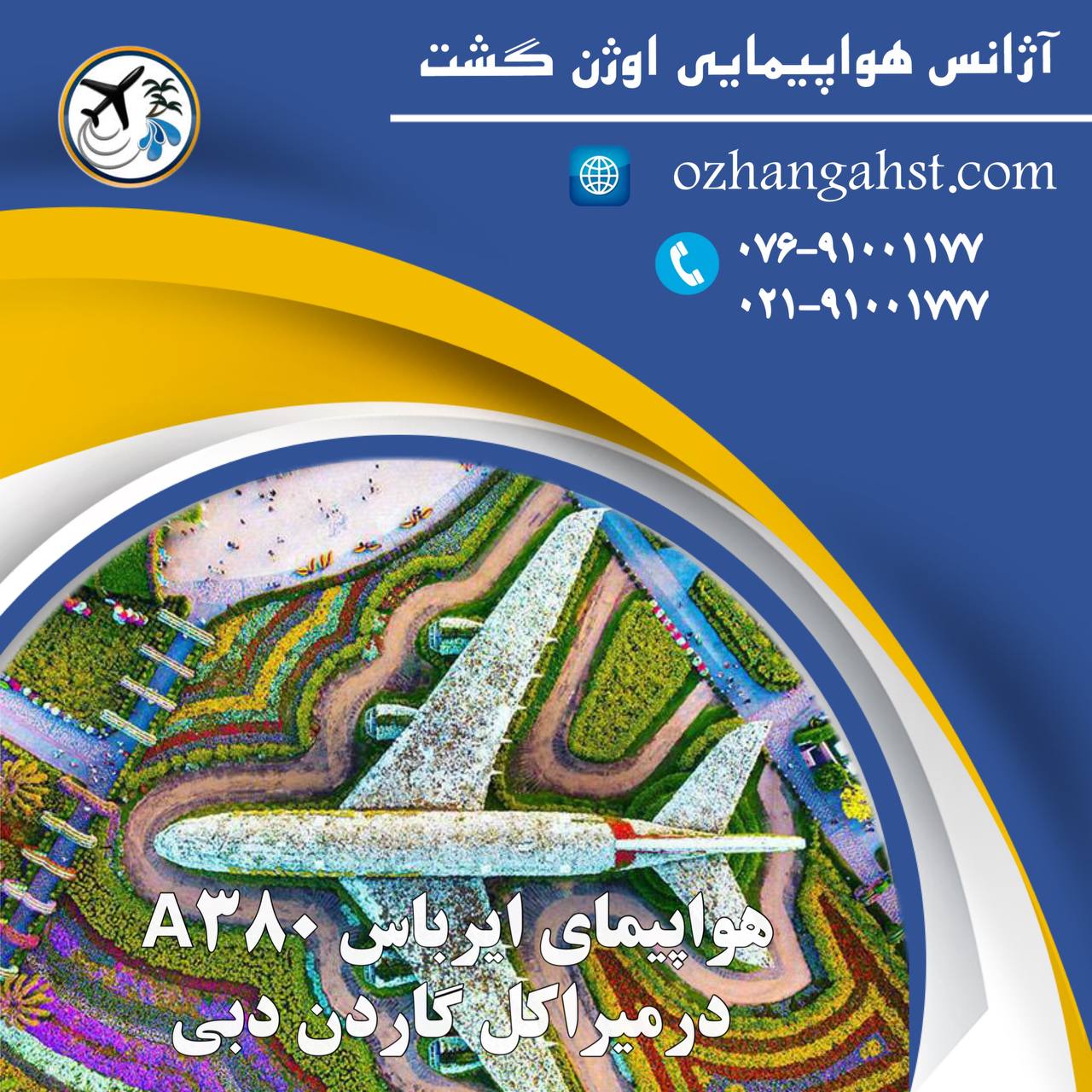 در قسمتی از میراکل گاردن یک فروند هواپیمای ایرباس A380 وجود دارد که با 5 میلیون گل زیبا پوشانده شده است. این منظره را فقط در دبی می توان مشاهده کرد. این هواپیما یکی از جذاب ترین قسمتهای باغ گل معجزه است. بر روی این هواپیما آرم هواپیمایی امارات دیده می شود و واقعا یک ایرباس A380 است. در واقع باغ گل میراکل با همکاری شرکت هواپیمایی امارات توانست این مجسمه گلکاری شده عظیمالجثه را بسازد و با چیزی در حدود 500 هزار گل و گیاه زنده تزئین کند. این هواپیما در سال 2016 توانست در دنیا، عنوان بزرگترین مجسمه گلدار به شکل هواپیما را به دست آورد و نامش را در گینس ثبت کند.